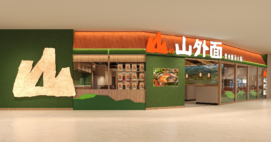 山的山外面是九毛九旗下又一火鍋品牌,主打來自貴州山里的好酸湯。來自大山里,走到山外面。以“山里來的酸”作為品牌標語,表達樸實真誠的品牌理念。將山里的好酸湯好食材,質樸真誠的人文屬性,帶到山外面。